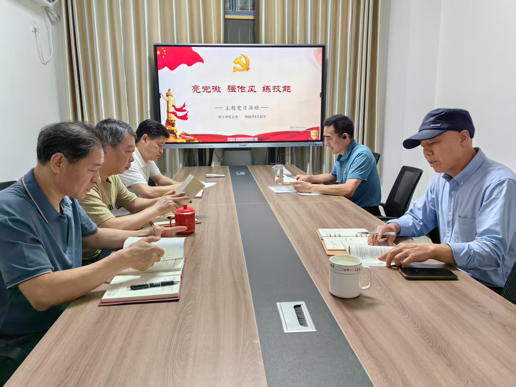 (通讯员:杨家林)2025年5月22日,保卫部党支部在B110会议室组织开展了"亮党徽 强作风 练技能"主题党日活动。党支部书记主持活动,支部全体党员佩戴党员徽章全程参与,通过理论学习与实践演练相结合的方式,进一步强化党员意识和履职能力。