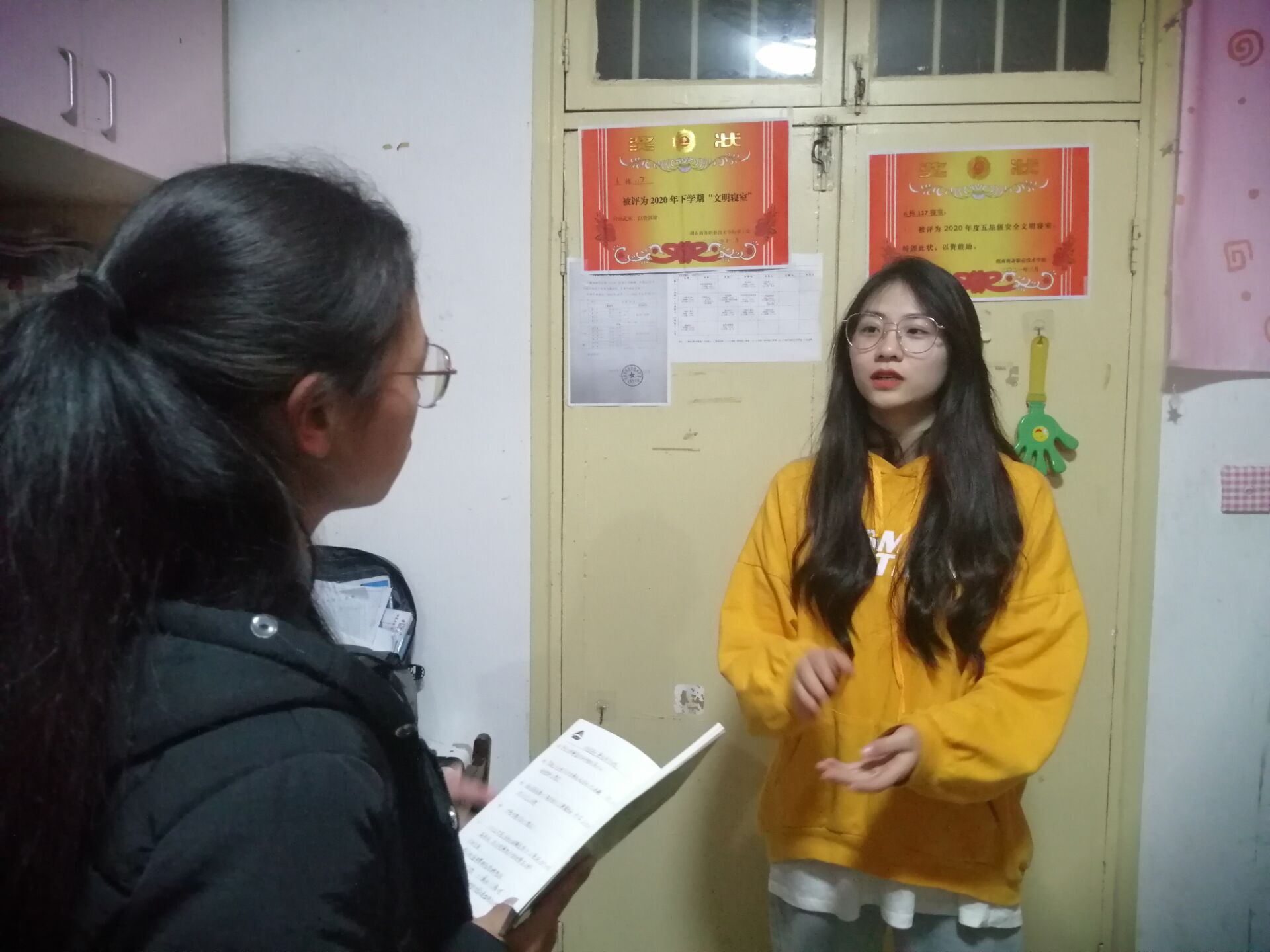 小记者:关于选上本次的安全文明寝室,觉得自己寝室的优势是什么以及感想。