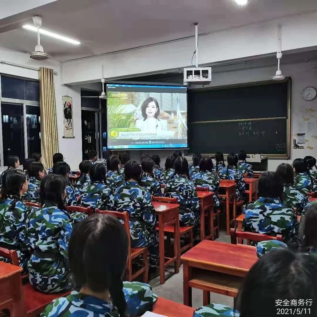 2021年5月11日晚,各连连长组织连队在责任教室观看关于电信诈骗题材的视频。