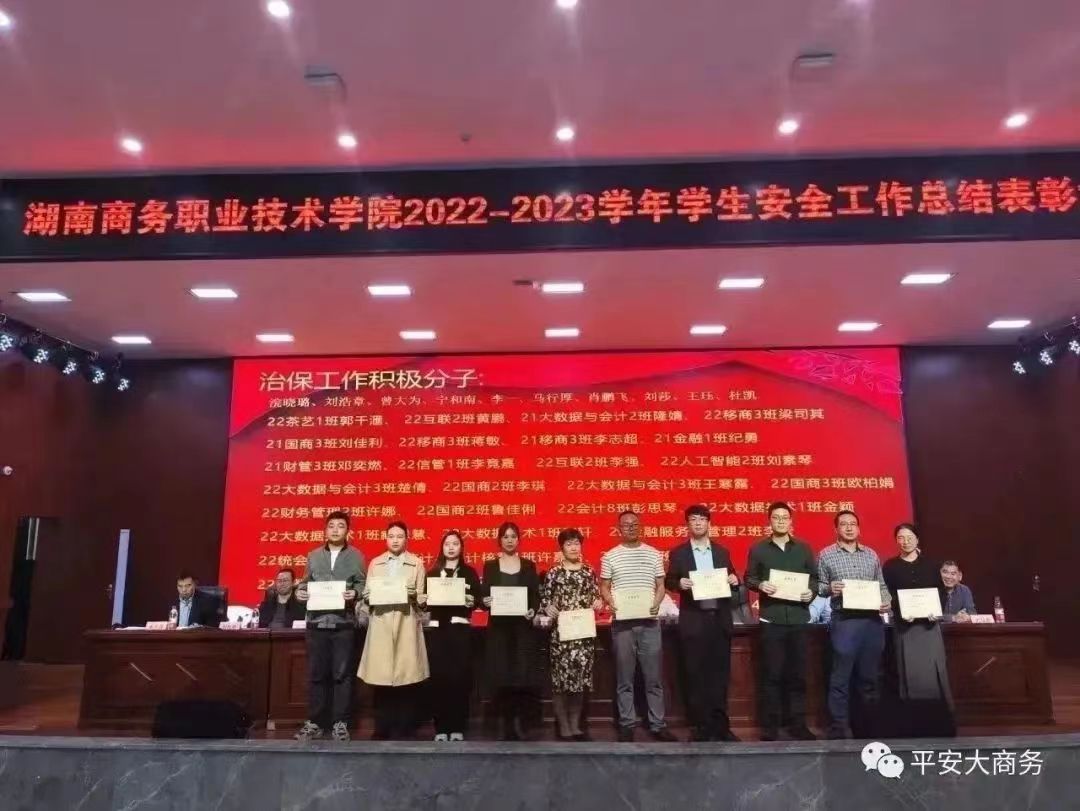 最后学院党委委员、副院长廖良林领导总结上一学年学生安全工作的成绩、经验和教训,指导今后如何更进一步开展好的学生安全工作,要求大家进一步提高认识,扎实工作。同时也强调荣誉的获得离不开学校的每一个人的辛勤努力和付出。他提出了三点意见,并且举了几起电信诈骗的例子,希望同学们能够引以为戒,提高自身的警惕意识。最后,他要求让我们树牢“生命至上、安全第一”的发展理念,以有力有效举措抓好安全稳定工作,为全省教育系统打好安全生产翻身仗做出商务职院应有贡献。