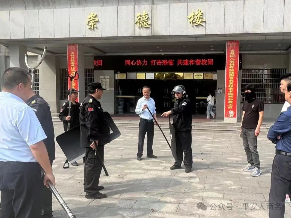 (通讯员 骆静莹 摄影 吴豫香)为切实加强校园安保工作,增强校园反恐防暴意识,提升学校安保人员紧急状态下的应变能力,保护学校师生的生命安全,我校于4月2日下午在崇德楼开展了反恐防暴应急演练。