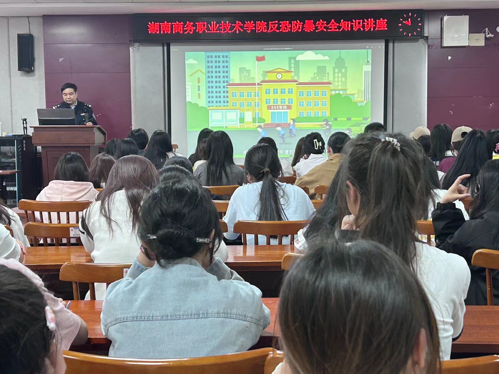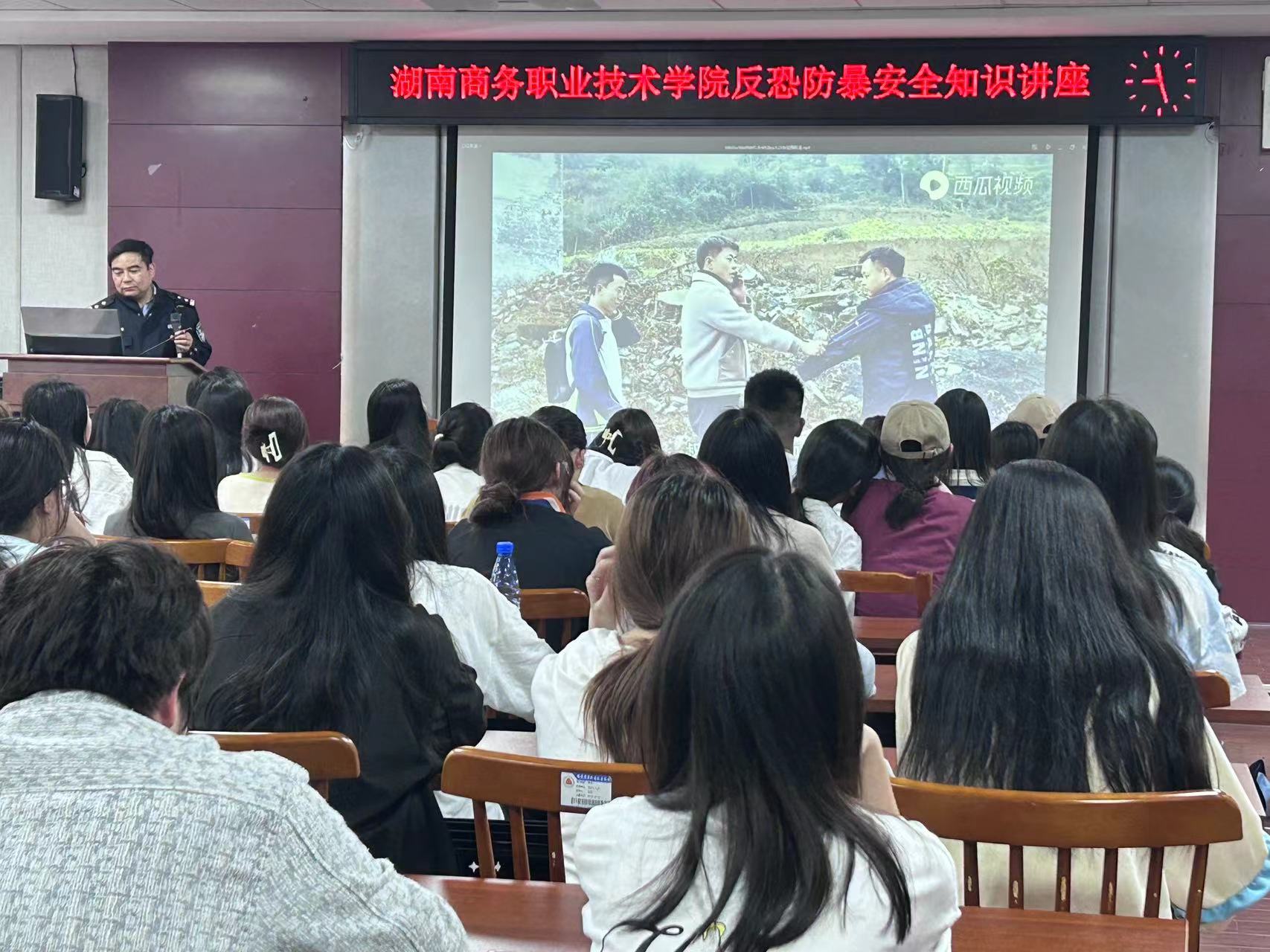 (通讯员 吴豫香 摄影 骆静莹)为贯彻落实国家总体安全观,增强广大师生防范恐怖袭击意识,提升防范和应对恐怖袭击的能力,共创平安校园,2024年4月2日下午我校在博思楼201教室开展反恐防爆知识讲座,特邀吴光辉警官来校为一百余名学生授课。