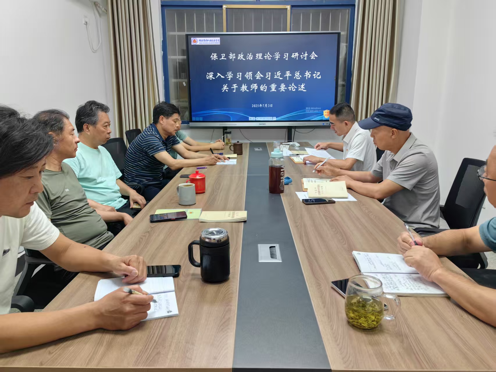 (通讯员:杨家林) 2025年7月3日,学校保卫部在崇德楼B110会议室组织召开“深入学习领会习近平总书记关于教师的重要论述”专题政治理论学习研讨会,重点围绕习近平总书记考察湖南第一师范学院重要讲话精神及大力弘扬教育家精神开展学习研讨,强调要以教育家精神引领校园安全管理,服务立德树人根本任务。