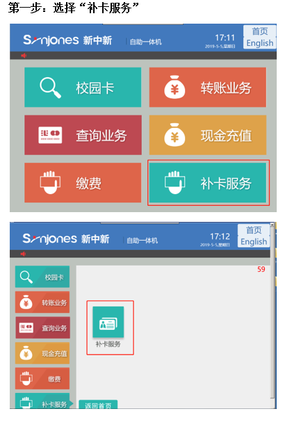 校园一卡通一体机补卡流程