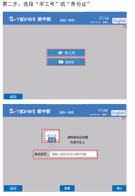为了更加方便校园卡的使用,学院在第2教学楼1楼大厅处安装了一台校园卡自助一体机,一体机能提供自助补卡、现金充值、银行卡充值(需事先完成银行卡和校园卡的绑定)、缴纳水电费等业务服务。自2019年新生入学起,不再发放新生临时卡,新生学号将由信息中心根据教务处生成的学号统一录入到一卡通后台管理系统中。每年10月份以后,请每届新生持校园卡到后勤收费结算中心补打学号。现将校园卡自助一体机补卡步骤告知如下: