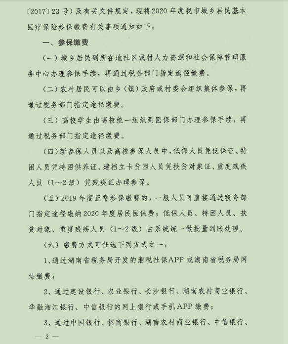 关于做好2020年度城乡居民基本医疗保险参保缴费有关事项的通知(长医保发【2019】52号)
