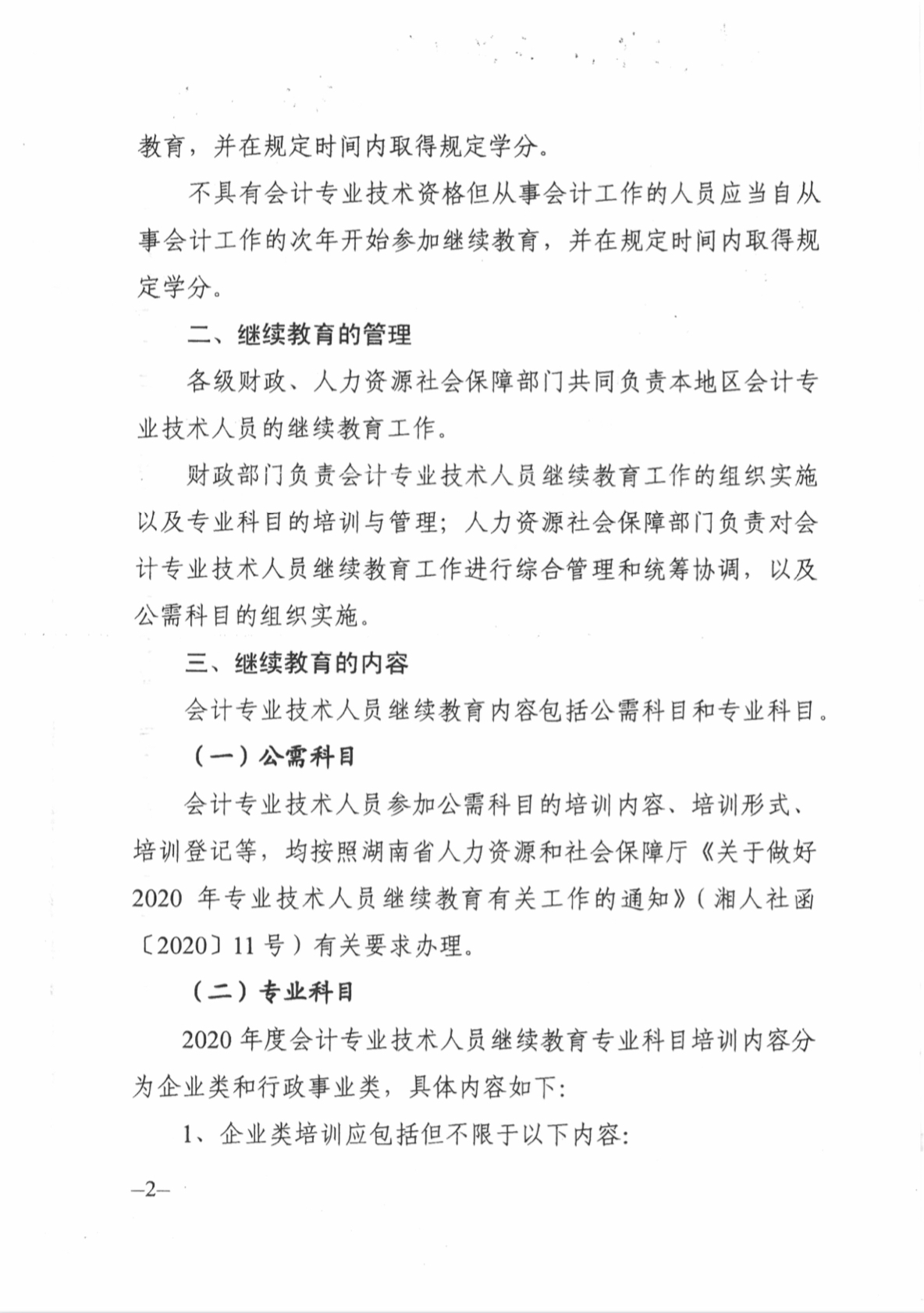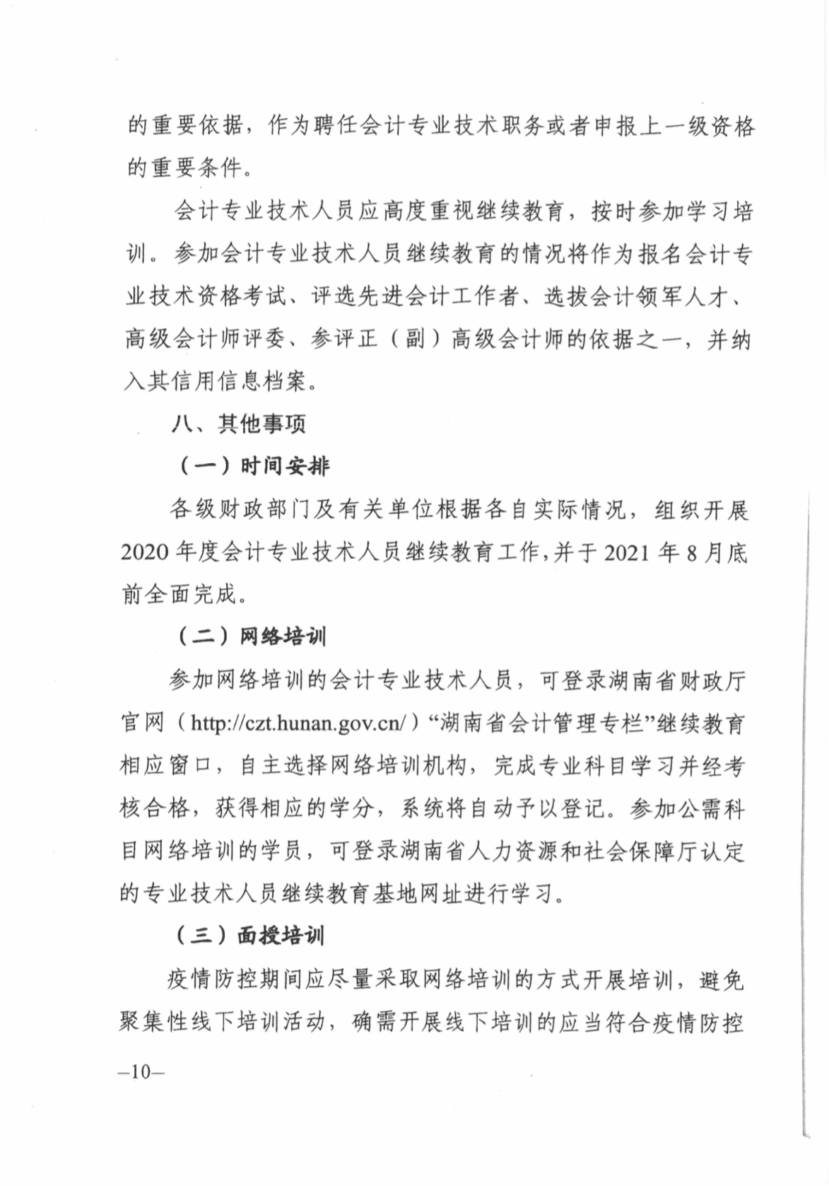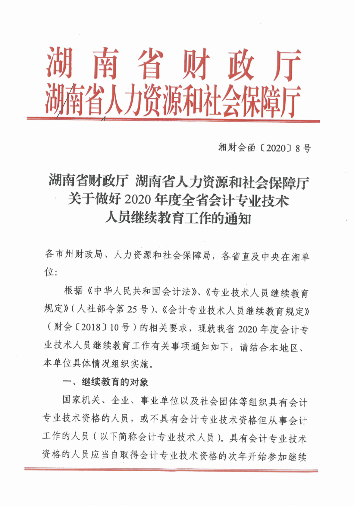 关于做好2020年度全省会计专业技术人员继续教育工作的通知(湘财会函〔2020〕8号)