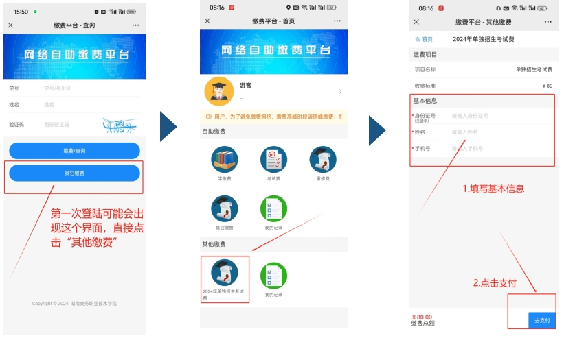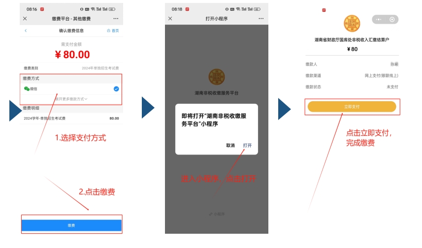 2024年单独招生考试费缴费流程