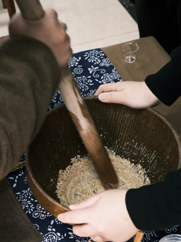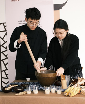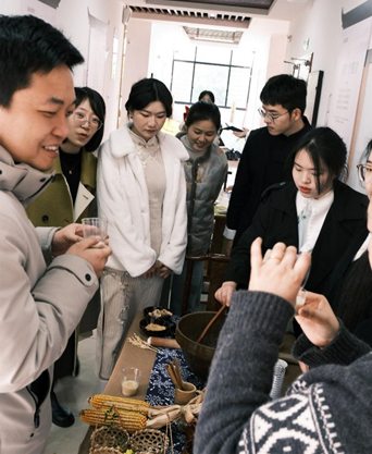 擂茶区同样热闹非凡,学生们将茶叶、生姜、花生、芝麻等食材放入擂钵,有节奏地研磨,食材散发出诱人的香气。冲调完成后,一碗碗热气腾腾、香气扑鼻的擂茶端到师生面前,大家品尝着擂茶,感受着传统擂茶文化的质朴与醇厚。