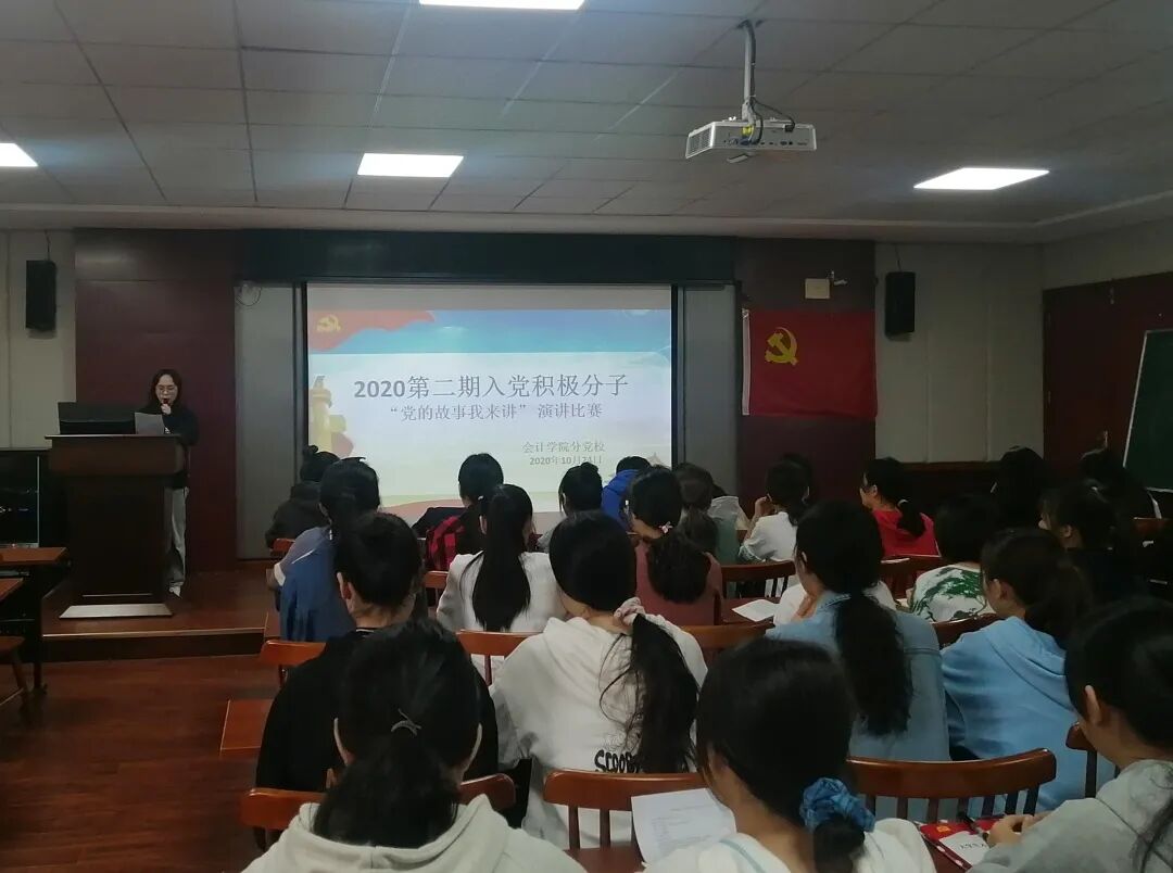 “讲好党的故事,见证初心使命”的主题演讲比赛,于10月24日上午在二教201室举行。这是由会计学院“红星引路”思政团队组织的红色演讲比赛,作为会计学院入党积极分子培训班每期的一堂必修教学内容。本次比赛由在2020年第二期入党积极分子105位学员中各小组推选了20名参赛选手按抽签顺序依次登台,讲述共产党员敢为人先、不甘落后、奋勇自强的感人事迹。红星引路思政团队成员、培训班班主任朱泳霖同志作为评委出席本次活动并对本次活动进行了总结点评。