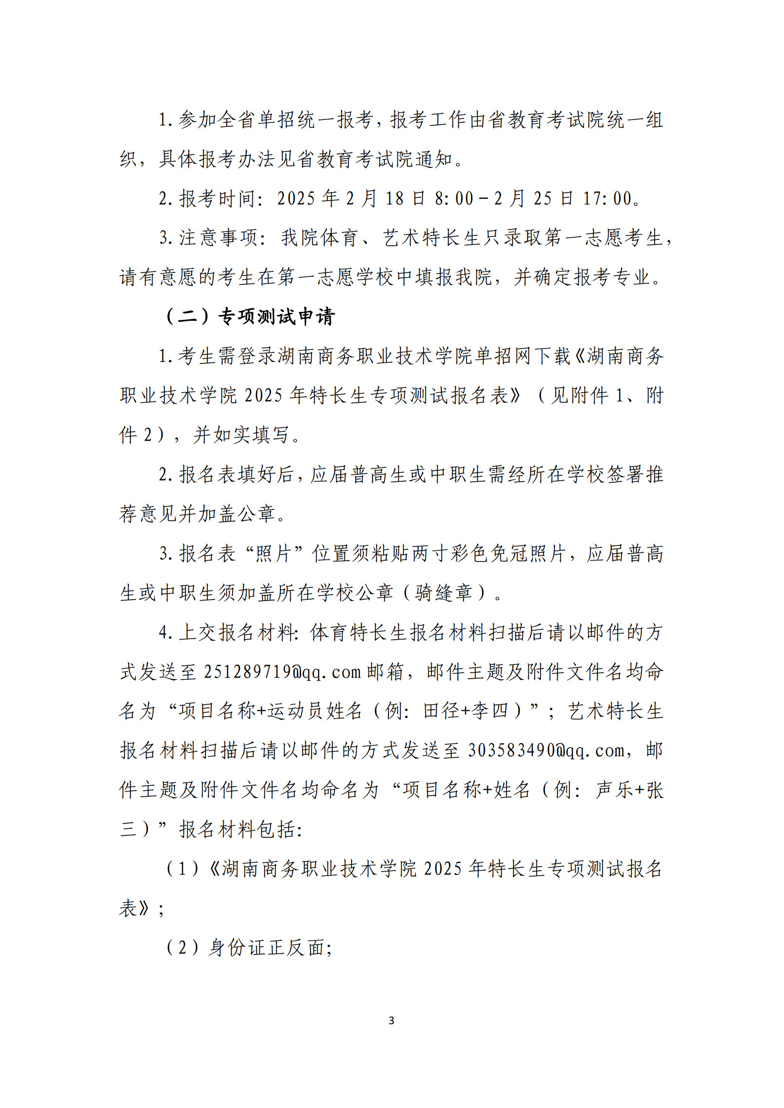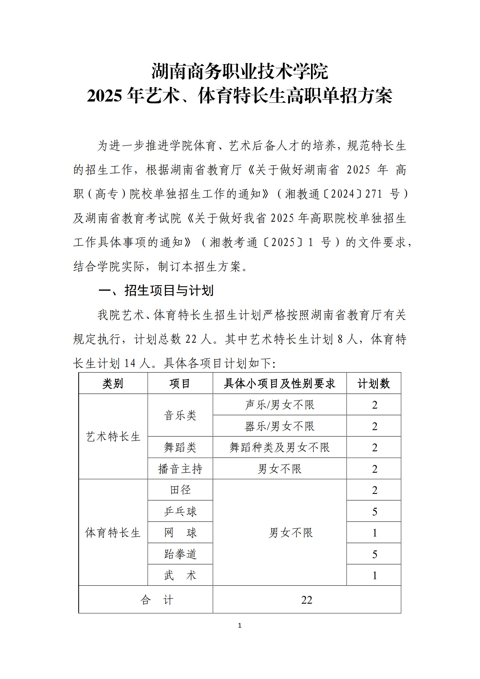 湖南商务职业技术学院 2025年艺术、体育特长生高职单招方案