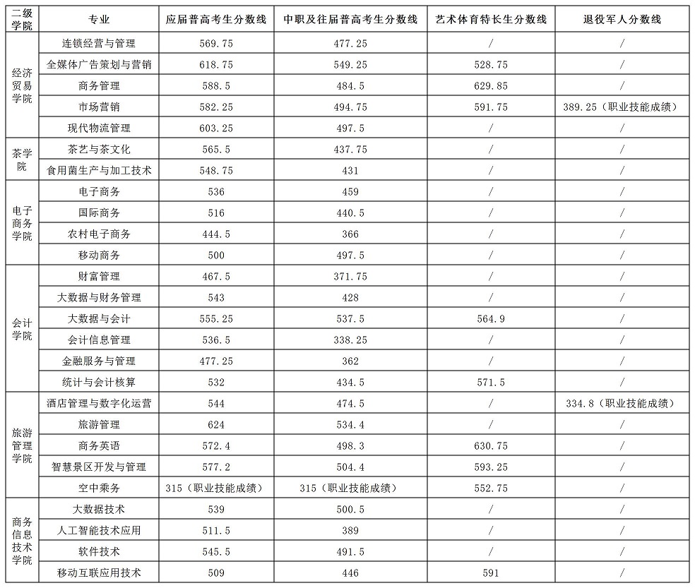2023年单招分数线