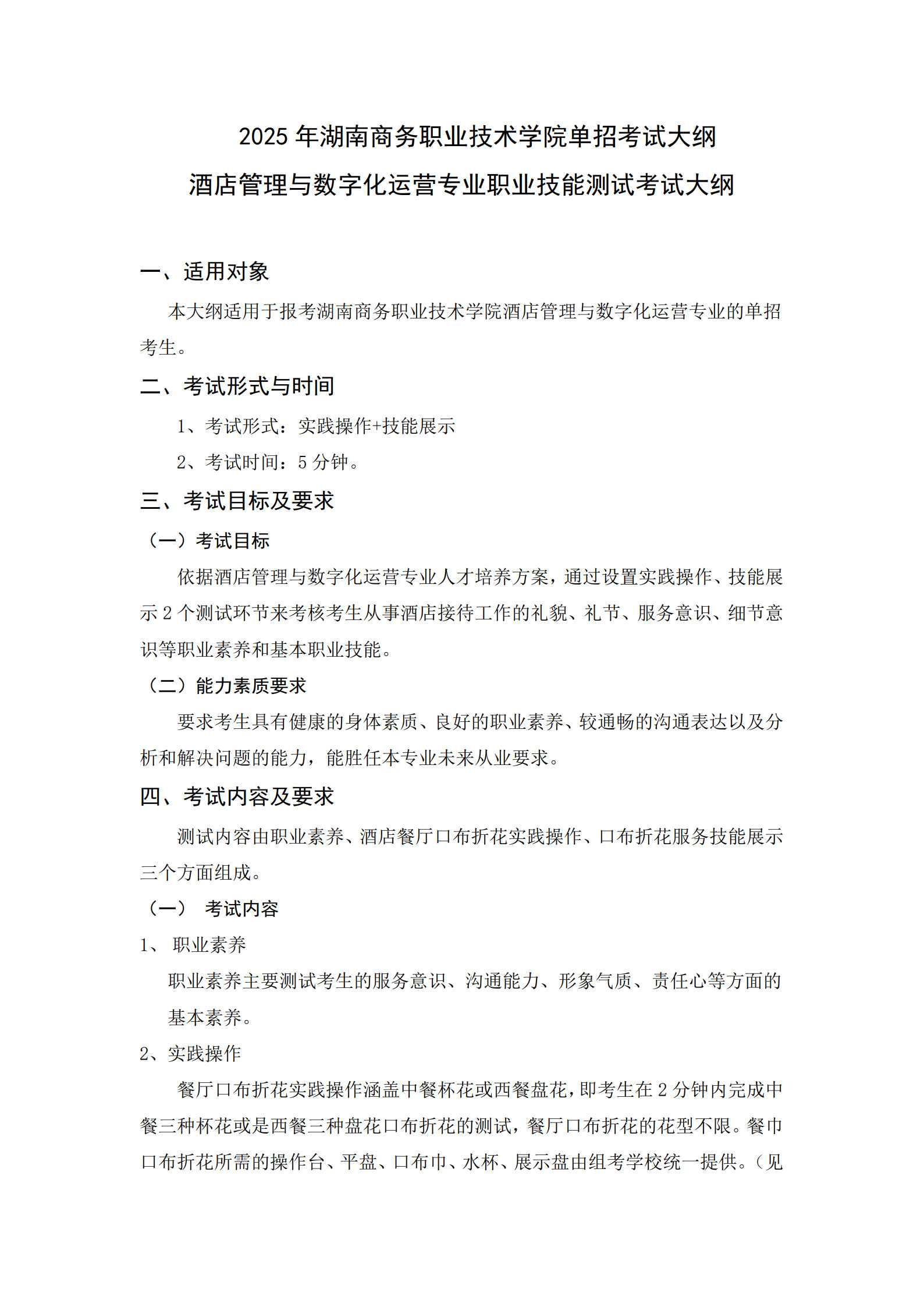 2025年旅游管理学院酒店管理与数字化运营专业职业技能测试考试大纲