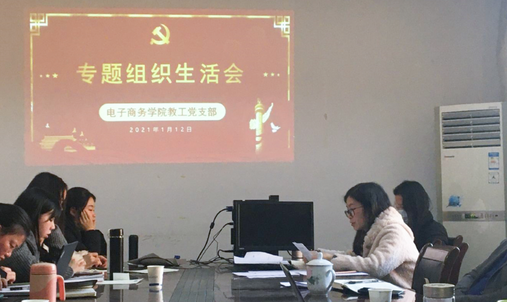 2021年1月12日电子商务学院教工党支部召开2020年度组织生活会和开展民主评议党员。