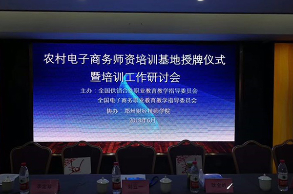 6月21日,在全国供销合作职业教育教学指导委员会在郑州召开的工作会议上,全国供销合作职业教育教学指导委员会(简称全国供销行指委)和全国电子商务职业教育教学指导委员会(简称全国电商行指委)共同授牌我院为“农村电子商务师资培训基地”。我院李定珍校长、电子商务学院曾鸣院长受邀出席会议。