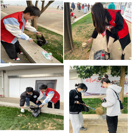 到达景区后,志愿者们迅速开始清捡垃圾。针对景区面积大以及存在卫生死角的情况,志愿者们以部门为单位分工划区清理,认真而仔细。身着红色马甲的志愿者们,一手提着黑色垃圾袋,一手拿着垃圾钳,在景区形成了一道别样的风景线。
