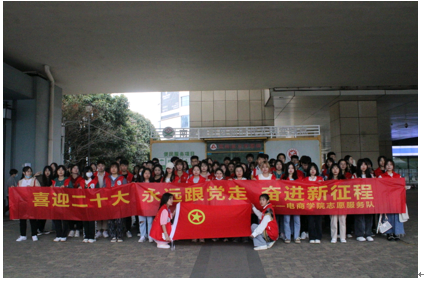 (本网讯 通讯员肖丽晶)充满朝气的三月,带着雨露和清香。3月12日,电商学院团学分会在汽车西站进行了以“喜迎二十大,永远跟党走,奋进新征程”为主题的学习雷锋志愿活动。