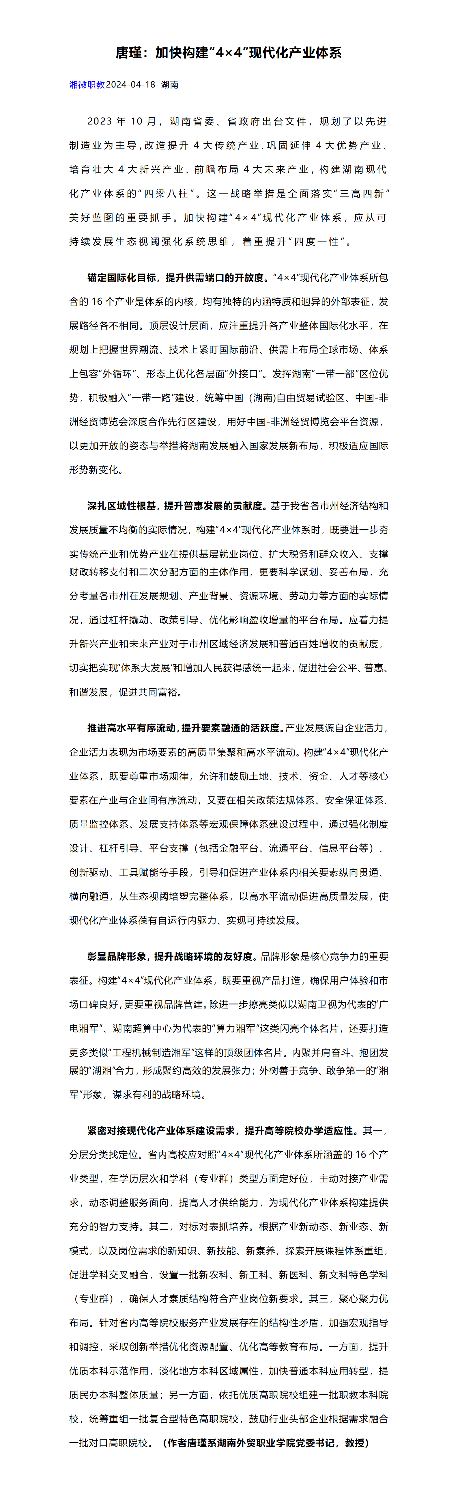 推进有条件的高职院校创建职业本科大学湖南职教划2024重点
