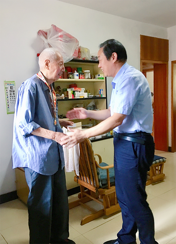在庆祝中华人民共和国成立70周年之际,正值学校“不忘初心牢记使命”主题教育开展之时,按照中共中央组织部、省委组织部、省委老干部局的要求,学校党委书记周忠新、工会主席林国安分别走访慰问了新中国成立前参加工作的离休老干部、老党员,校工会、组织人事处相关人员陪同。