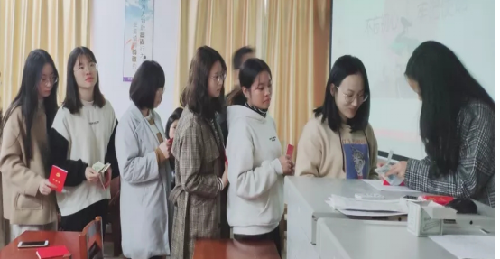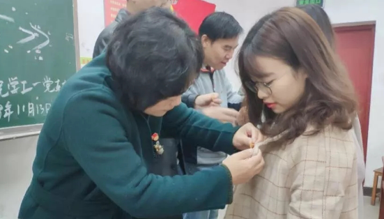 (2)教工党员为学生党员佩戴党员徽章;