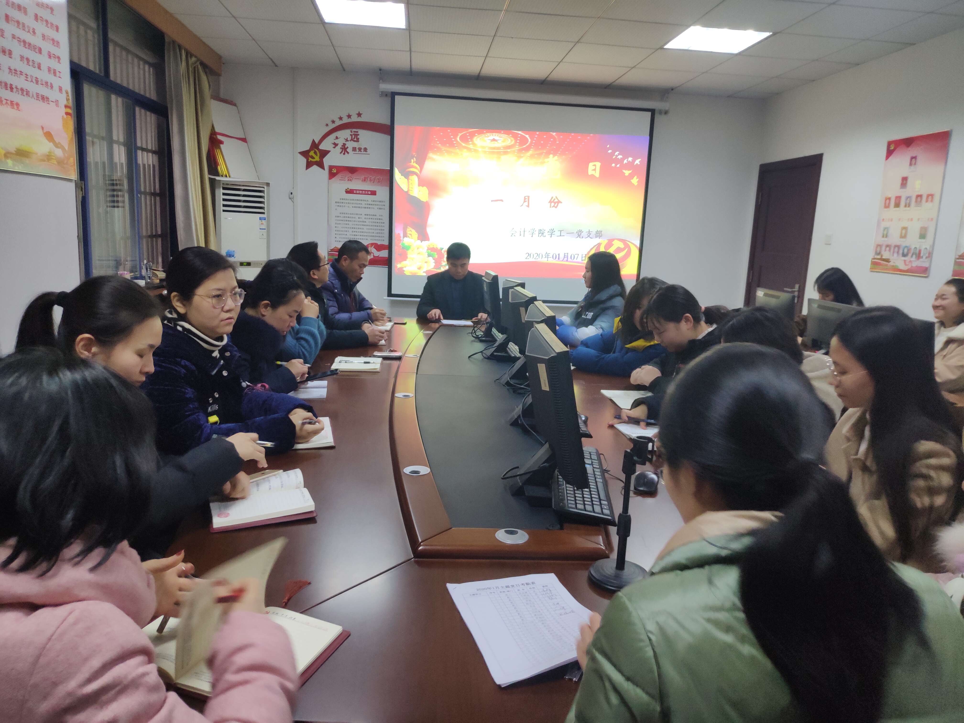 2020年1月7日下午16:30在办公楼310开展2020年1月份主题党日,参加此次会议的是会计学院学工一党支部教工党员和18级学生党员,本次会议主持人是朱泳霖同志。主要内容如下: