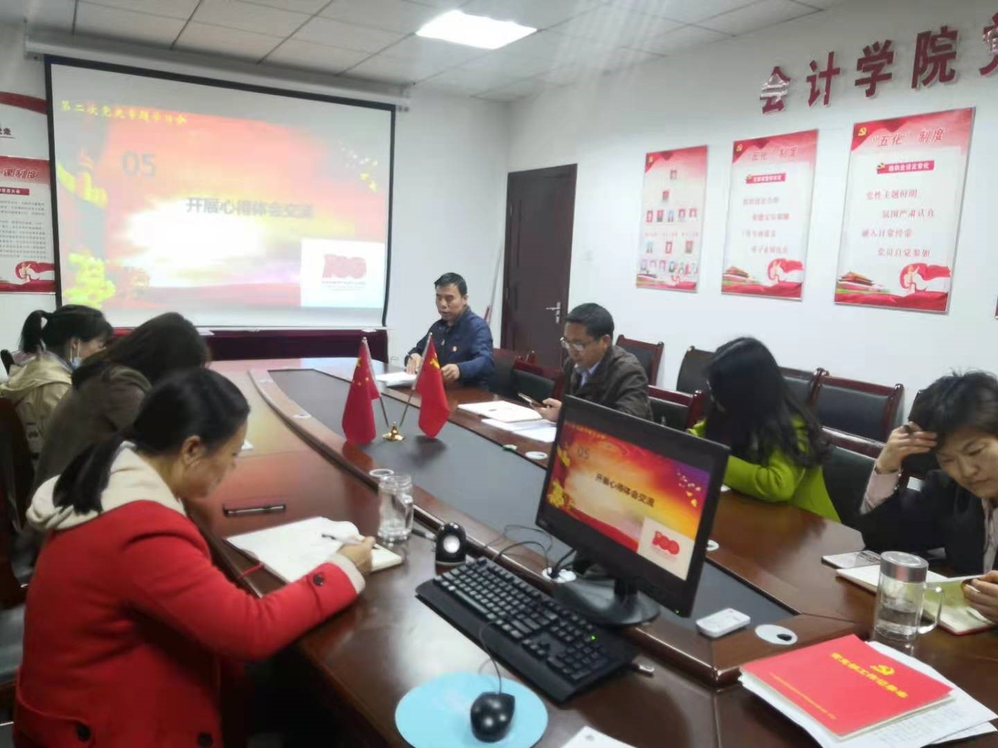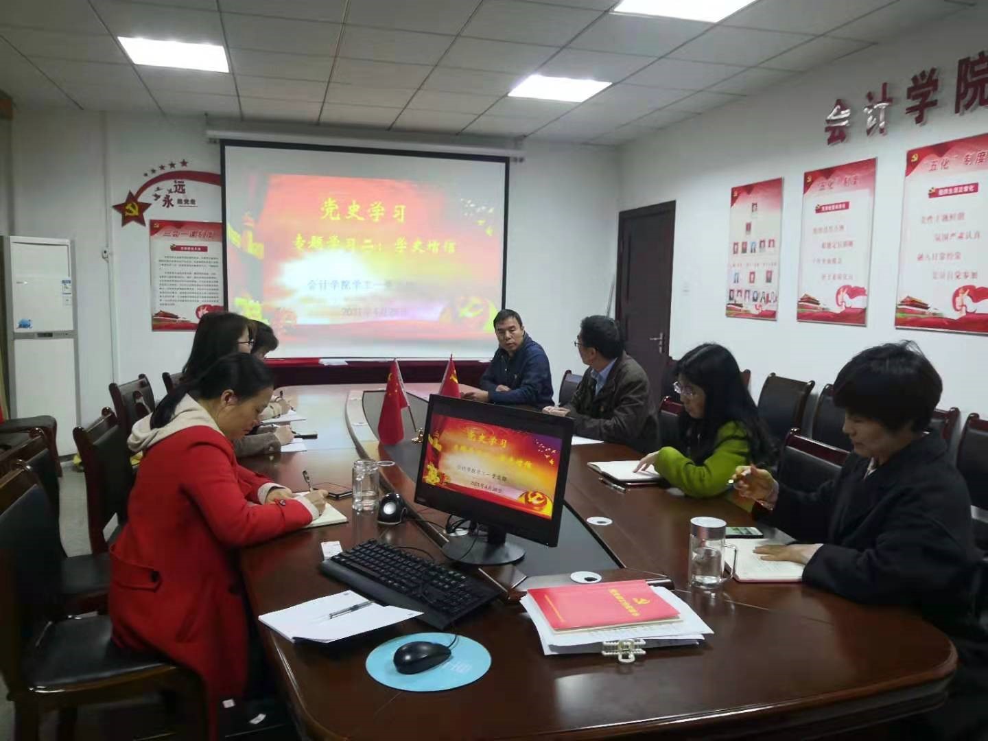 2021年4月28日上午11:00,会计学院学工一党支部在办公楼310召开了本学期第二次党史专题学习会,参会人员为全体教工党员,毕业生党员通过现场录制的视频进行线上学习。会前,支部书记朱泳霖同志介绍了本次党史专题学习会主要是对专题二“学史增信”进行学习。