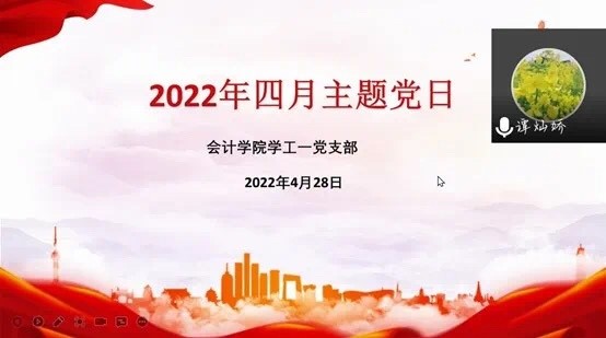 4月28日19:00,会计学院学工一党支部在腾讯会议APP上举行四月主题党日活动,全体党员参加了此次会议。