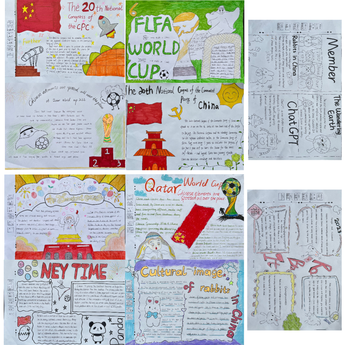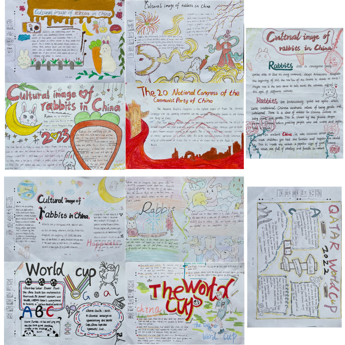 为丰富同学们的生活和培养书写英语的专业态度,宣传好字好设计的口号,更为了让大家认识到一手好字的重要性,增强同学们对英语各方面的兴趣,基础课部公共英语教研室于2023年3月21日如期举办了 “第六届英文书写设计大赛”。为同学们提供一个交流及展现自我的平台,在书写设计的世界,领略异国的风采。这次比赛为小组赛总共有500多名同学参加,共组成132个小组,各小组学生通力合作,将英语学习能力与创作能力相结合,作品书写流畅美观,手绘图案唯美,版面设计新颖,成就了一幅幅佳作。教师们从手抄报的英语书写是否规范、版面设计是否美观合理、主题是否鲜明得当等等方面对每幅作品进行了细致评价。