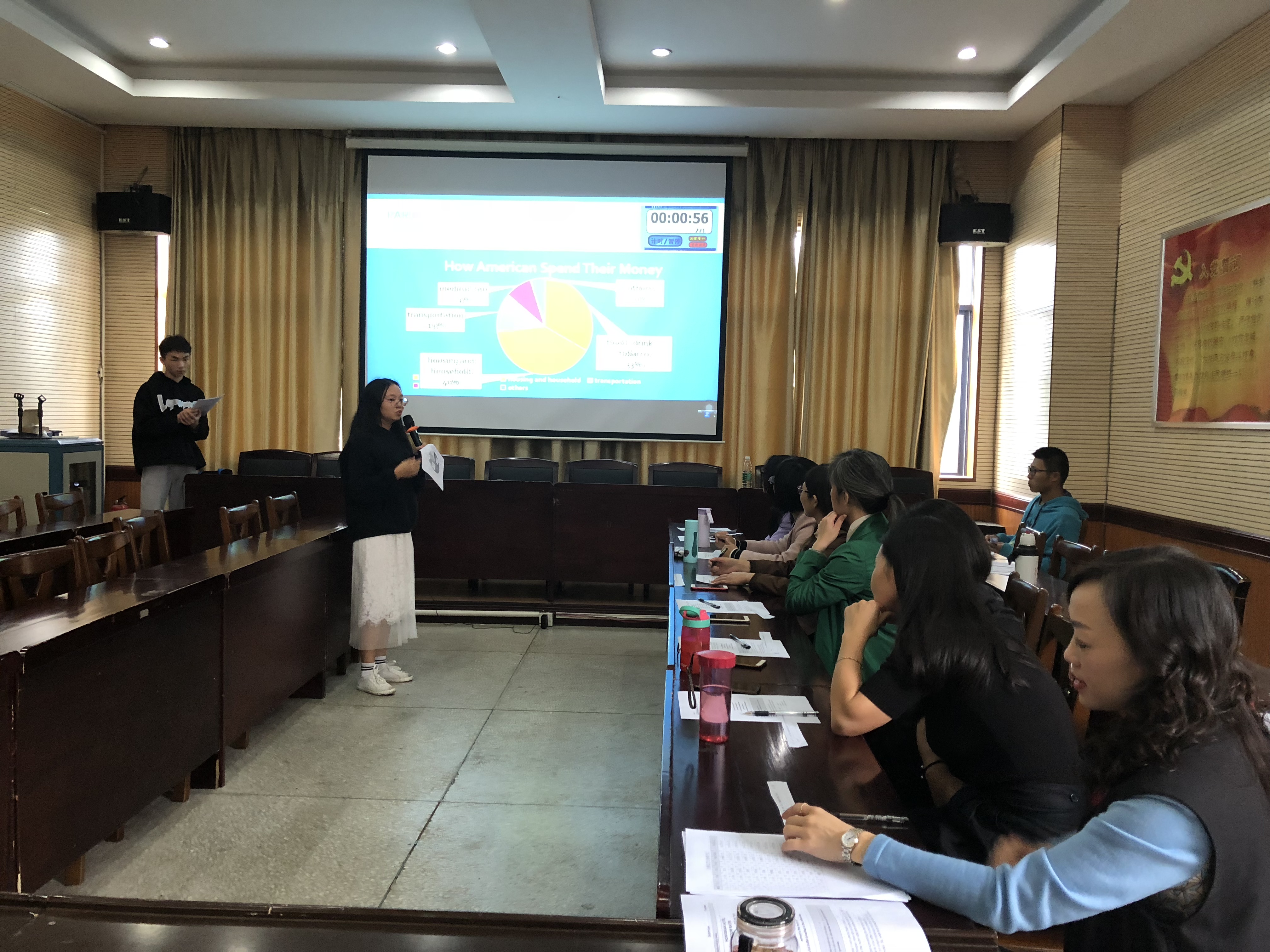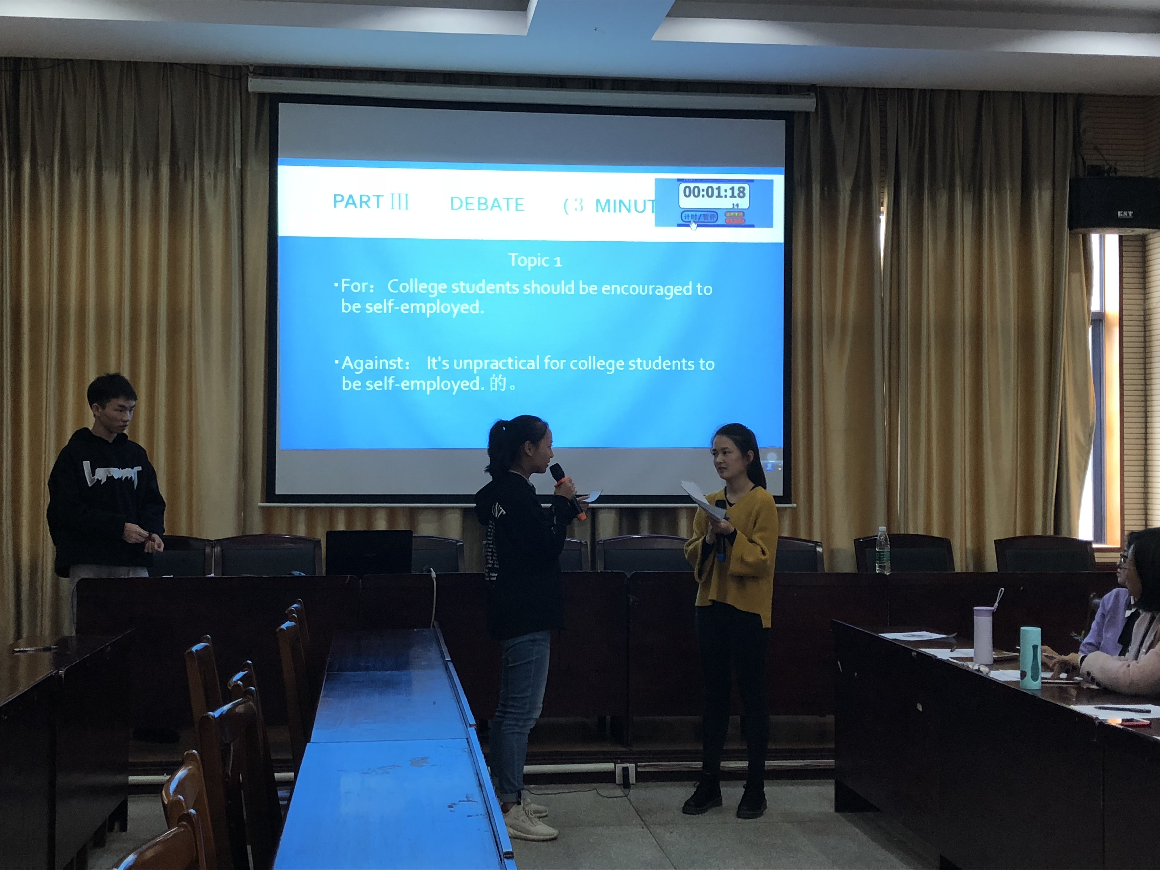 10月23日中午,公共英语教研室举行第十八届非英语班级实用英语口语大赛决赛活动。公共英语教研室多名英语老师担任评委。