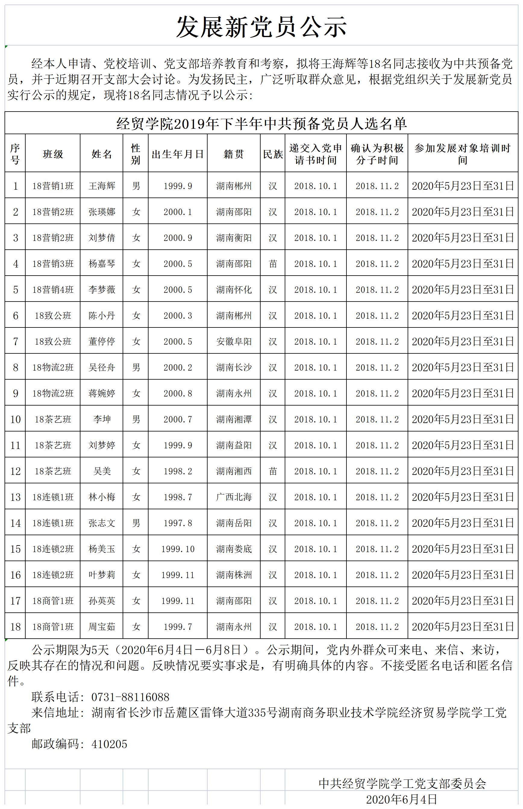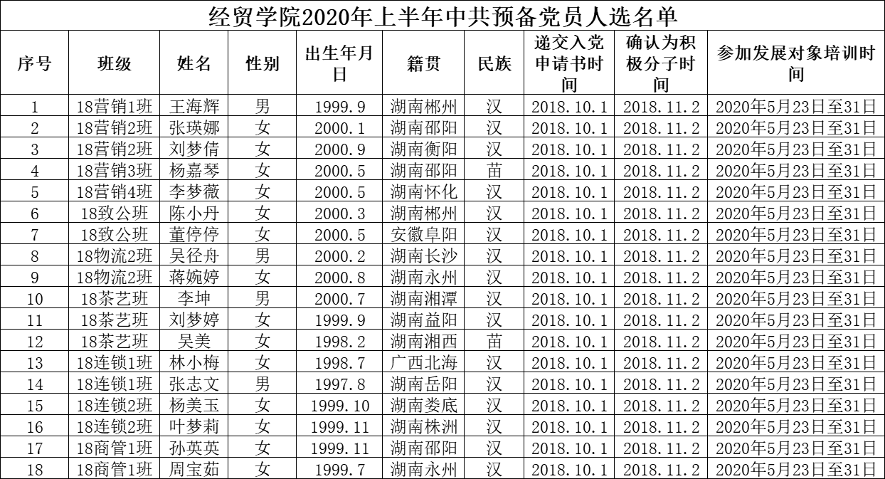 关于确定王海辉等18名同志为中共预备党员的公示