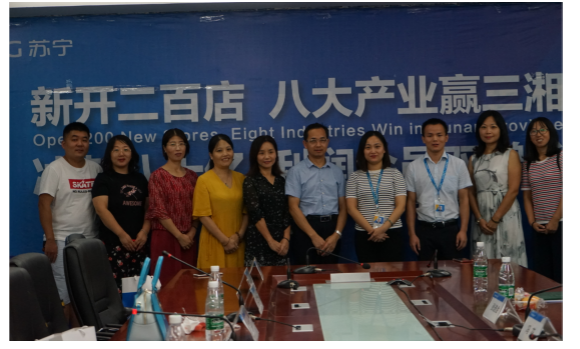 为推动产教深度合作,实现校企协同创新, 9月11日下午,学校对外合作交流处罗立红处长、经济贸易学院辛磊院长、经济贸易学院各教研室主任等一行9人应邀前往苏宁云商集团股份有限公司华中区长沙地区管理中心,公司人力资源与行政中心总监冯花、经理欧洋民等热情接待,双方就校企合作事宜进行首次洽谈。