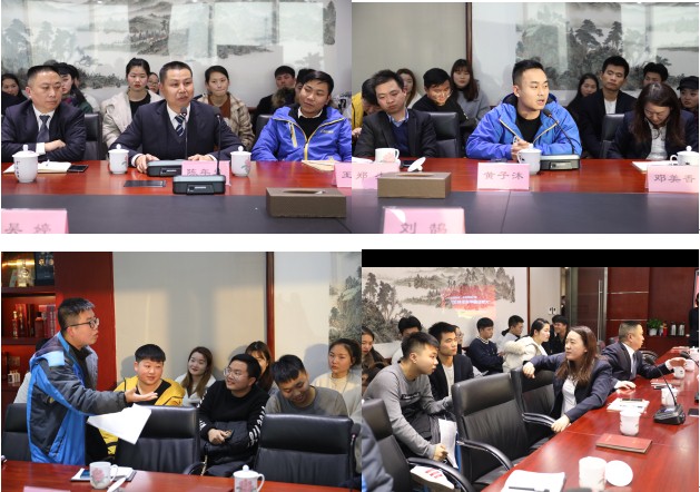 座谈会上,大家首先观看了企业宣传片,对湘贵集团及湖南沃成科技有限公司企业文化、发展、规划等有了深度了解。接着学生代表们纷纷自我介绍,还畅谈自己参与过的湘贵集团组织的营销活动,更分享了公司举办的“营销扫盲”活动中的感受和收获。同学们表达了对学校的栽培之恩和对公司的感激之情。