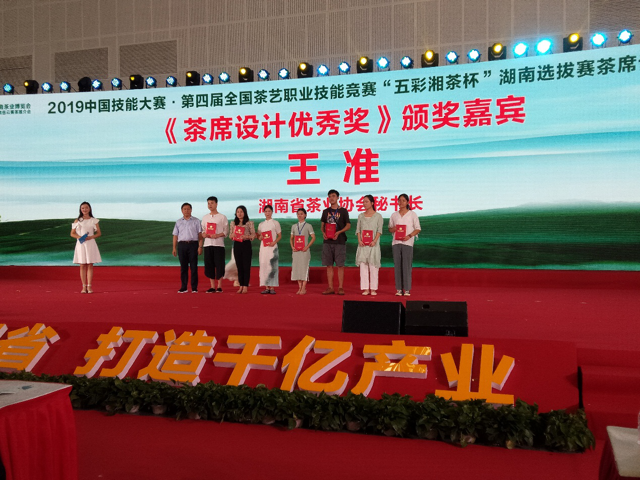 9月9日,由省农业农村厅、省人力资源和社会保障厅共同举办的、2019中国技能大赛﹒第四届全国茶艺职业技能竞赛“五彩湘茶杯”湖南选拔赛圆满落幕。经过3天的激烈角逐,我校荣获团体赛二等奖、个人赛二等奖及茶席设计赛三等奖。