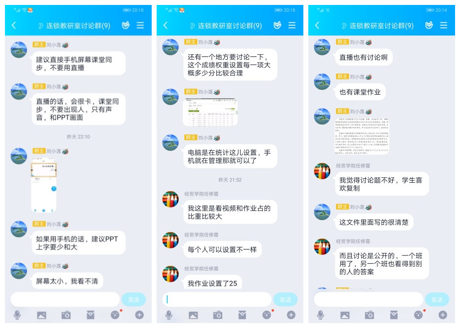 为学而教,而在线教学中最不可控的便是学生学习的配合程度,各位教师还在会上对学生在线学习情况进行了集中汇报与反馈,对目前教学效果进行了讨论交流,将增加与学生的在线互动方式、增加录播课数量、提高录播课的制作质量等方案纳入下一阶段在线教学的计划中,以进一步提高学生在线学习的积极性与参与度。
