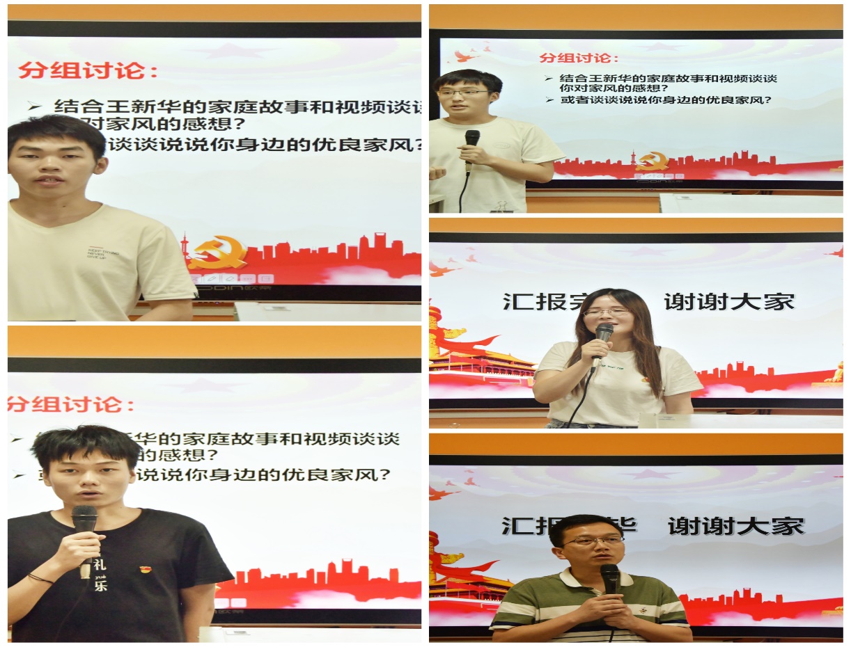 接下来,全体党员观看视频《杜德才夫妇:八旬夫妻同传好家风》,杜德才与杨秀云两位耄耋老人同舟共济、相濡以沫、携手共度了数十载的峥嵘岁月,是羡煞旁人的模范夫妇,这对伉俪在平凡的日子里努力生活,待人亲和,乐于助人,子孙也深受影响,在各自的领域都有所建树。随后,全体党员分组进行讨论,交流观后感,其中预备党员王海辉同志谈到:家风就是家族的长辈对党员提出的一些规范要求,优良家风不仅使其家庭成员的身心健康得以顺利地成长,而且也使家庭之中的孩子在长大之后能够顺利地成为对国家和人民有用的人;党员陈祉旻同志表示:家风是中华民族五千年所传承下来的优良美德,他引用孟母三迁的故事,来说明家风对一个人的成长所起的巨大作用。