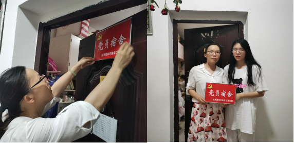 经贸学院支部委员胡欢同志为党员宿舍挂牌