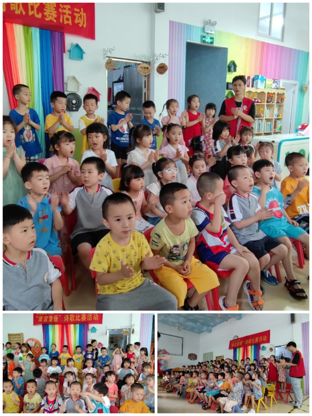 随后,志愿者们进入小班、中班、大班教小朋友们唱《我们是共产主义接班人》。在小班,学唱歌曲之余,陈瑶和张佳林带领小朋友们表演才艺,为小朋友们讲党徽的由来和形状;在中班,小朋友们在学习歌曲之后玩起‘送鸡毛信’的游戏,个个玩得不亦乐乎;在大班,在邹桂香和唐琴妹的指挥下,响起整齐好听的童声。