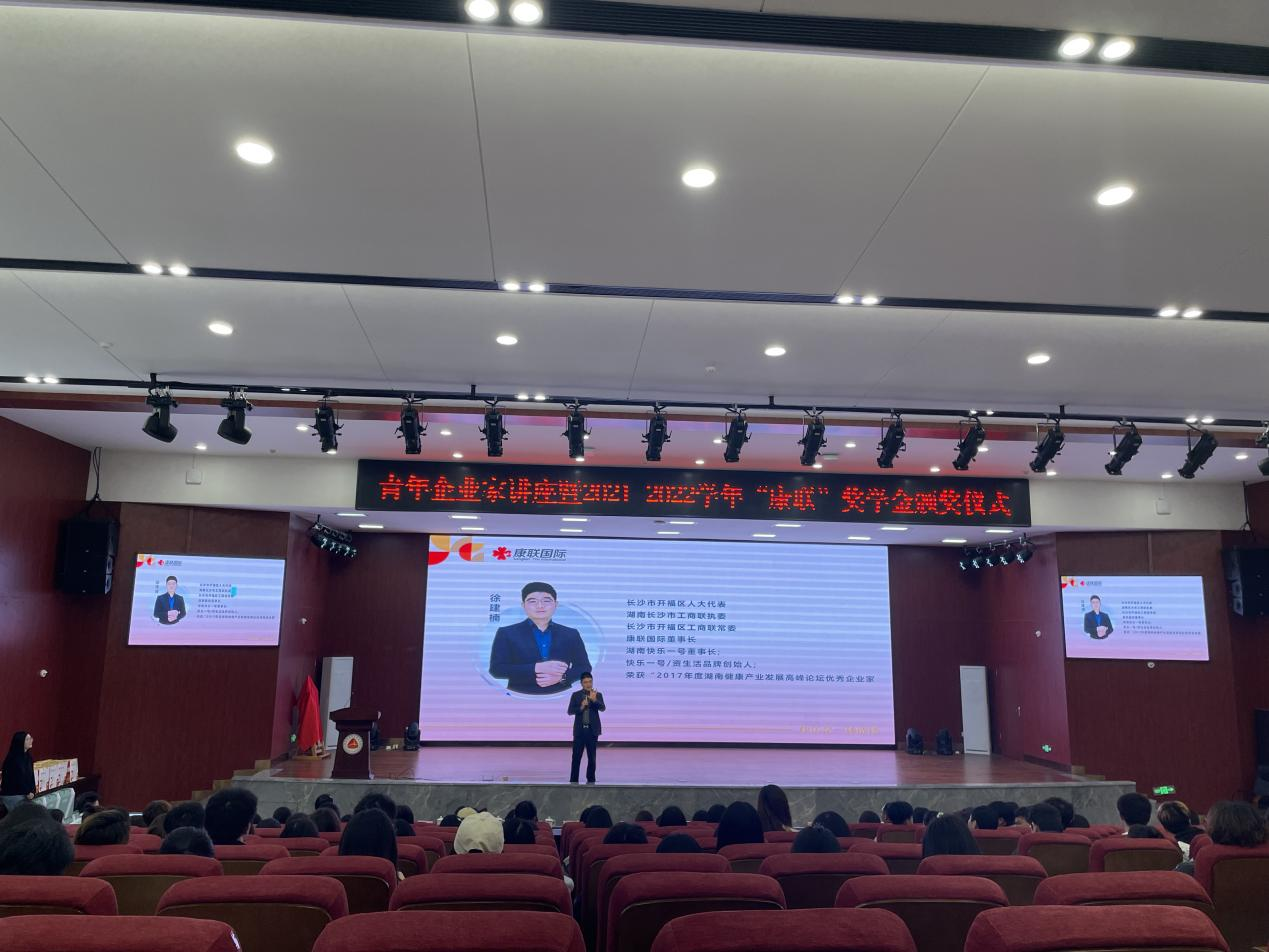 2023年3月7日下午3点,经济贸易学院青年企业家讲座暨“康联”订单班授牌仪式在产教融合楼报告厅举行。