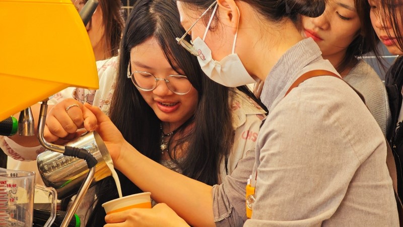 学生在麦当劳体验冲制咖啡