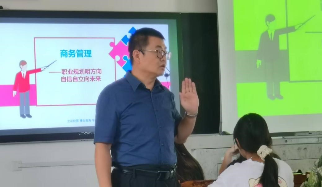 ▲商务管理专业新生教育讲座现场