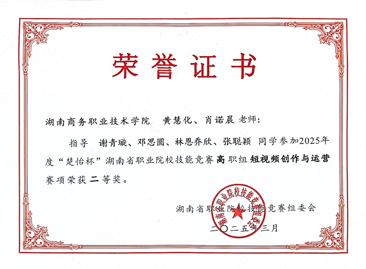 我院全媒体广告策划与营销团队获2025年度“楚怡杯”湖南省职业院校技能竞赛“短视频创作与运营赛项”二等奖