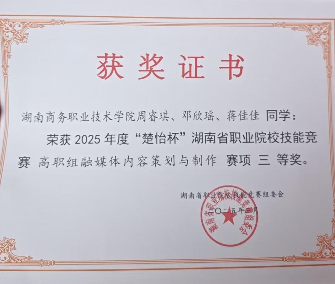 我院全媒体广告策划与营销团队获2025年度“楚怡杯”湖南省职业院校技能竞赛“融媒体内容策划与制作赛项”三等奖