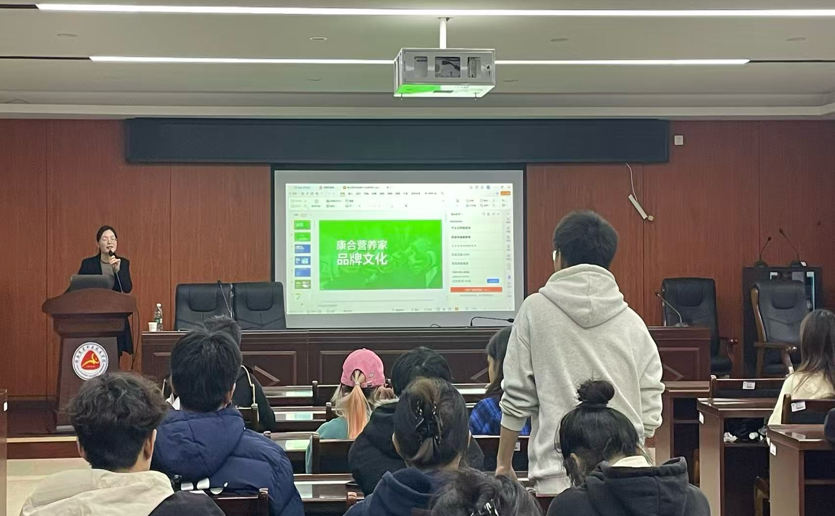颁奖典礼上,长沙方恒商贸有限公司的龙雪经理作为品牌方代表,向获奖团队表示热烈祝贺,并进行了公司及品牌的专题宣讲。她详细介绍了“盛世康禾”的品牌理念、发展现状与未来战略,充分肯定了同学们在比赛中所展现出的专业素养与创新潜力,并表达了与企业深化合作、共同培养高素质营销人才的强烈意愿。