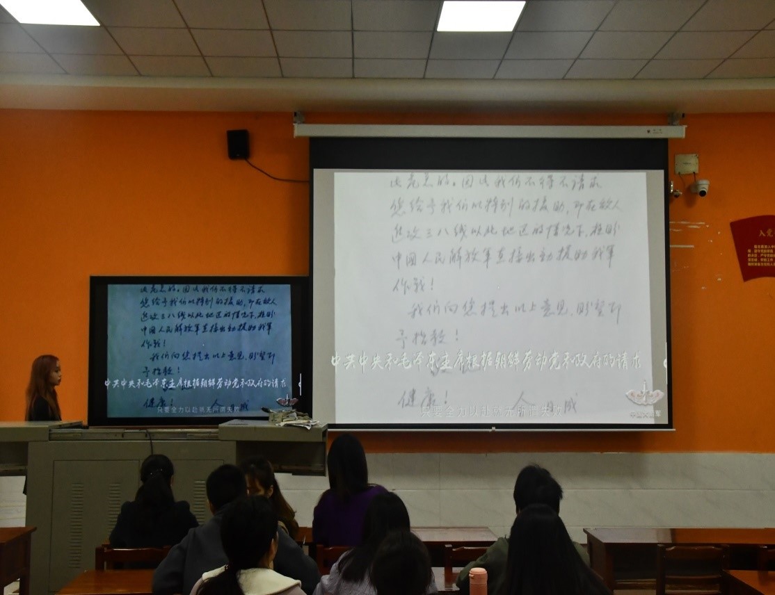 (通讯员 李坤) 2020年是纪念中国人民志愿军抗美援朝出国作战70周年,为学习和弘扬中国人民志愿军的伟大爱国主义精神和革命英雄主义精神,引导支部党员传承红色基因,经济贸易学院学工党支部于10月20日组织全体党员在二教101教室开展“纪念抗美援朝70周年”主题党日活动。本次活动由第四党小组陈小丹同志主持。