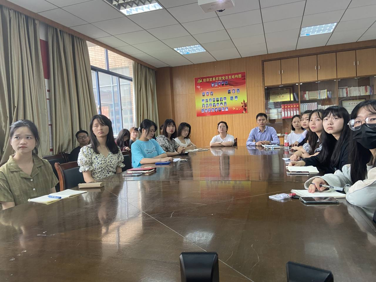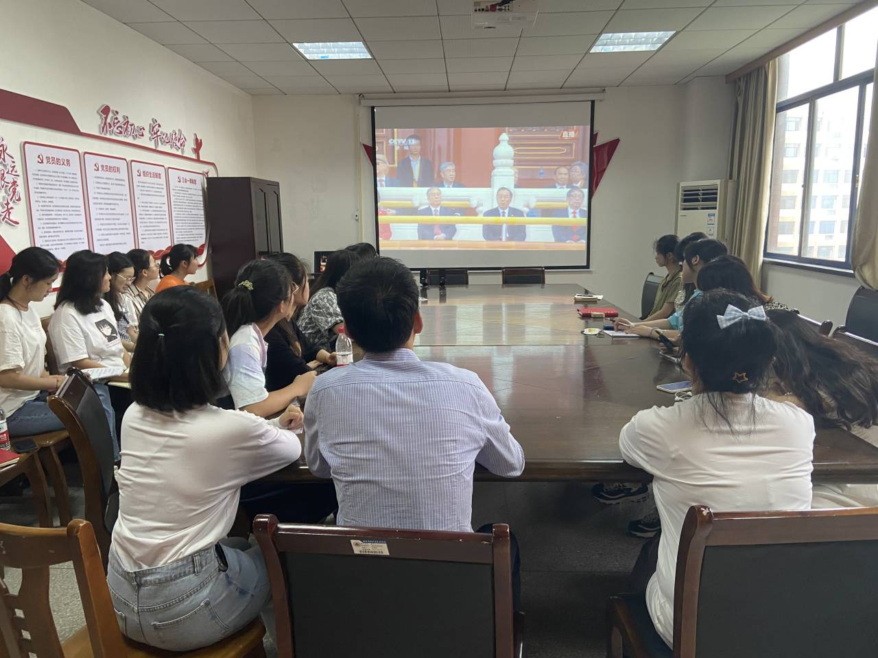 (通讯员 周俊龙)立志于中华民族千秋伟业,百年恰是风华正茂。2021年7月1日,中国共产党迎来100岁华诞,经济贸易学院学工党支部于经济贸易学院党员活动室(办公楼302会议室)组织全体党员观看“庆祝中国共产党成立100周年大会”。