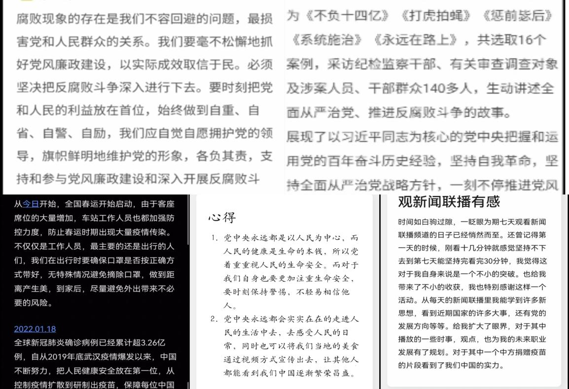 活动结束后,全体入党积极分子表示:在为期一周的观看时间里,受到了深刻影响,使自身养成了自觉关注时事的良好习惯,提高了辨别、筛选、吸收、处理信息的能力,更好地领悟了党的路线、方针、政策。作为一名入党积极分子,应当关注国家时事,树立正确的人生价值观,宣传中国共产党的先进思想,在党的全面领导下,加强政治理论和科学文化学习,增强“四个意识”,坚定“四个自信”,坚决做到“两个维护”,为早日实现中华民族的伟大复兴和国家统一贡献青春智慧与力量!
