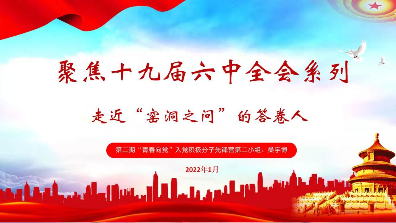 (通讯员 刘睿希)为深入学习党的十九届六中全会重要精神,1月20日20:00,经济贸易学院学工党支部以线上会议的形式开展“聚焦十九届六中全会”第七次主题党日活动“走近‘窑洞之问’的答卷人”。此次活动由第二期“青春向党”入党积极分子先锋营第二小组桑宇博同学主持,经济贸易学院学工党支部全体党员、入党积极分子参加本次主题党日活动。