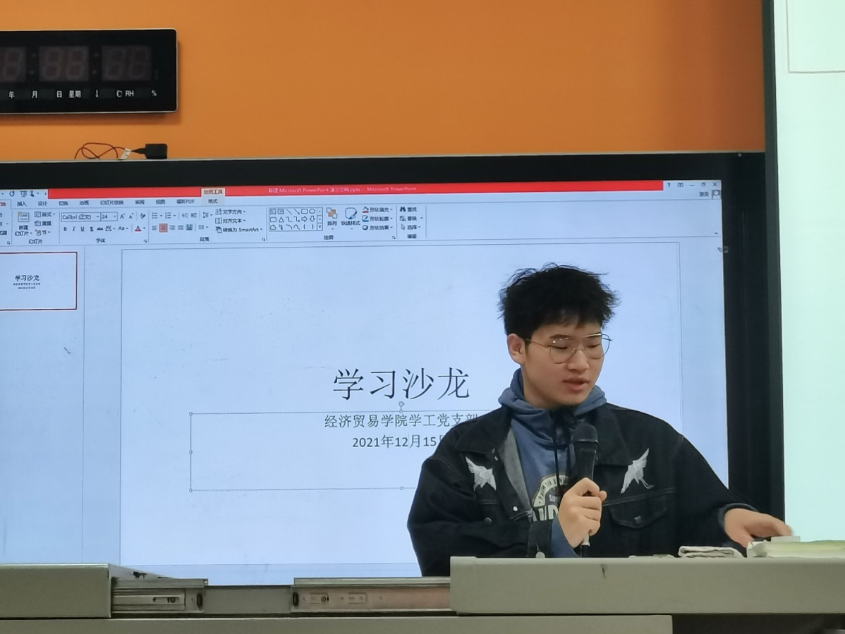 (通讯员 杨灯华 邓亚平)为使支部党员和入党积极分子以榜样为“镜”,汲取榜样力量,砥砺奋进前行,2021年12月15日晚上19:00,经济贸易学院学工党支部组织全体党员和入党积极分子在二教101教室(经济贸易学院分党校)开展“榜样星火·照亮百年征程”学习沙龙。本次活动由“青春向党”入党积极分子先锋营第六小组李爱同学主持。