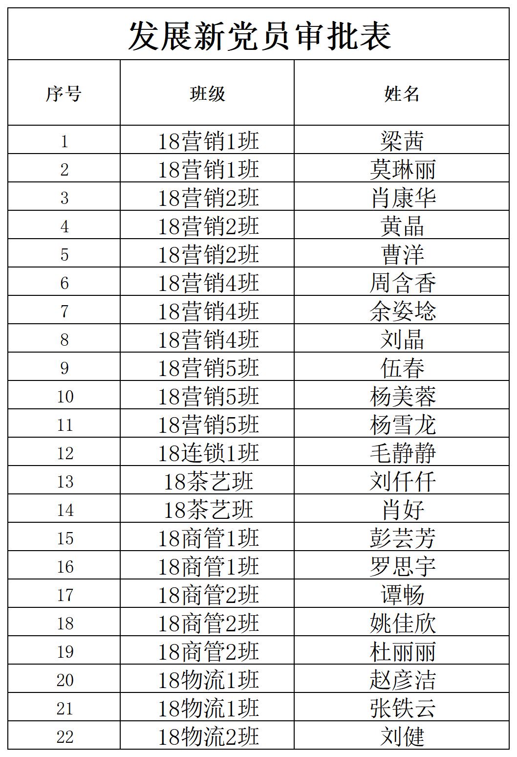 2020年11月5日,经支部委员会研究,报上级党委备案同意,将梁茜等22名同志列为发展对象。报据发展党员工作有关要求,现将其有关情况予以公示。