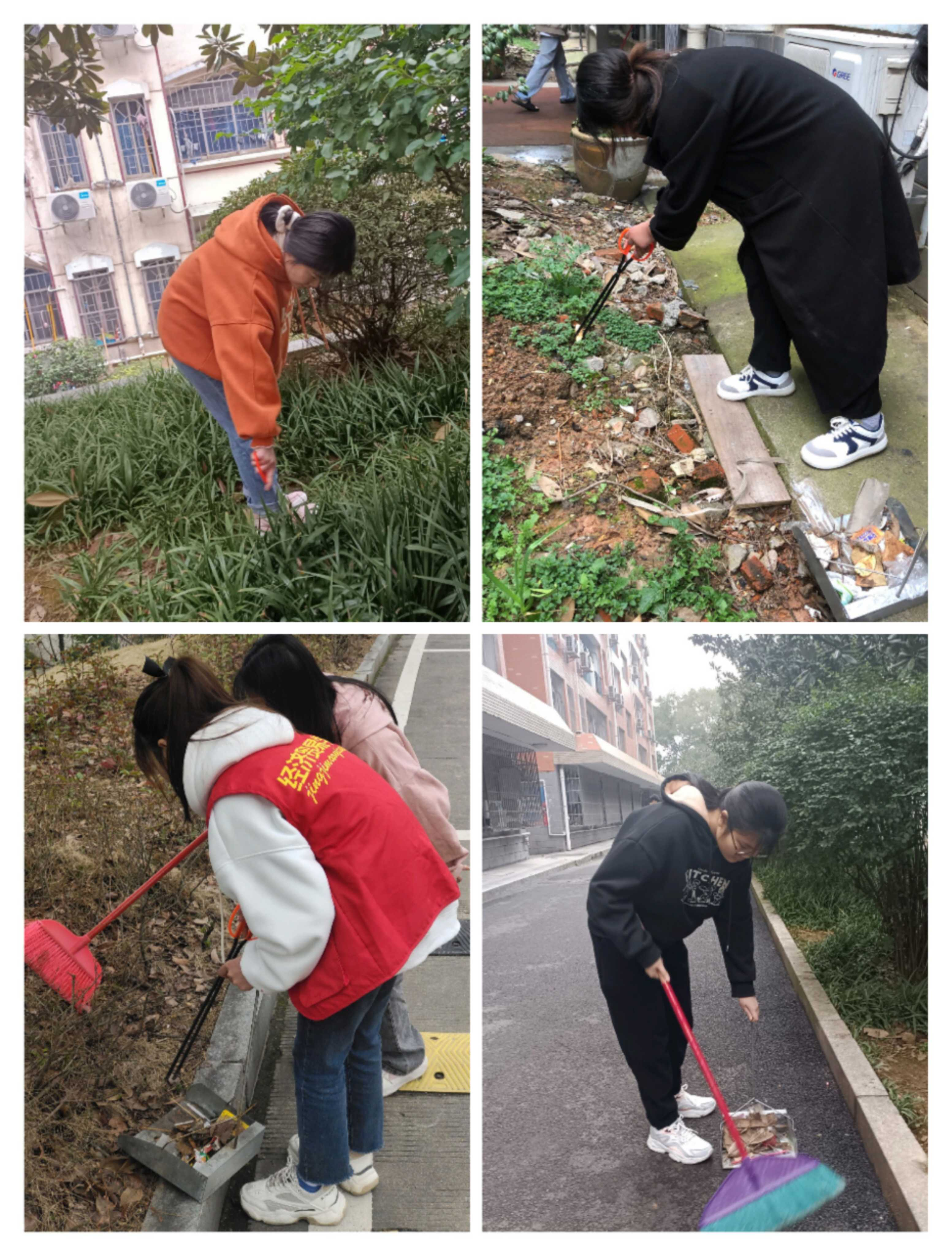 ▲同学们正在清扫校园